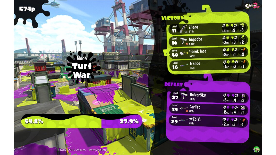 | Mode | Turf War - Regular Battle | |||||||||||||||||||||||||||||||||||||