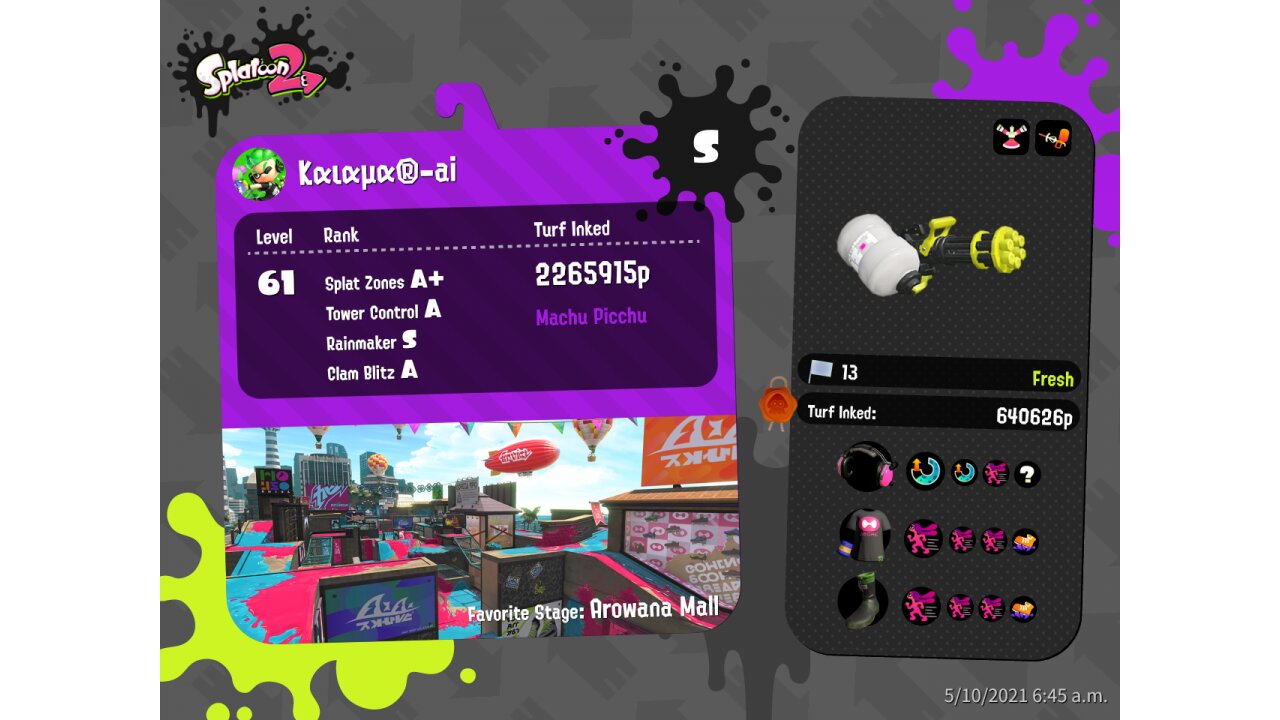 | Name | Weapon | Level | Rank | Inked | k+a/sp | k/d |