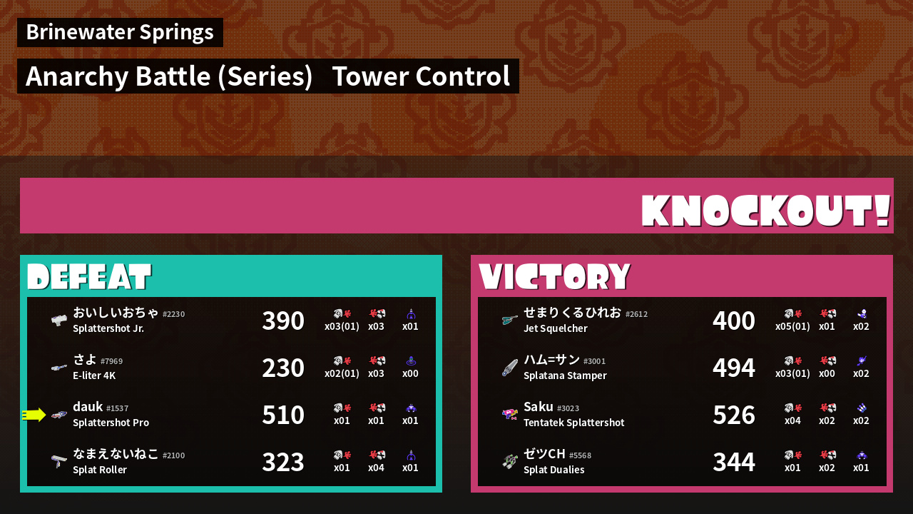 | Weapon | Splattershot Pro ( Angle Shooter / Crab Tank) | ||