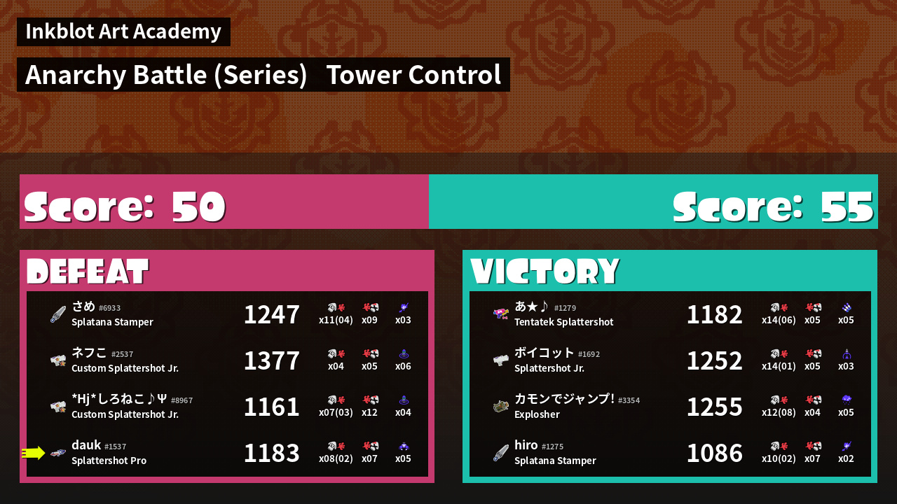 Name | Weapon | Inked | ![]() |