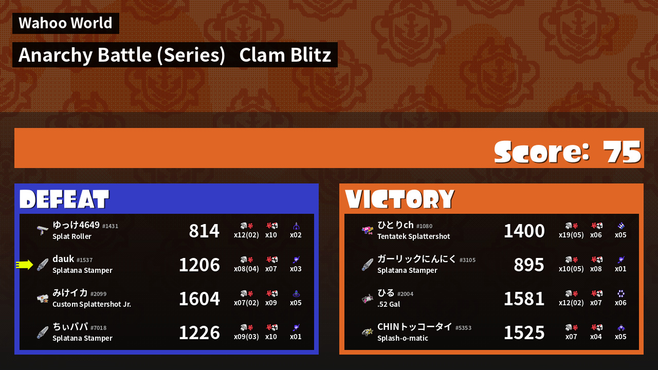 | Mode | Clam Blitz - Anarchy Battle (Series) | ||