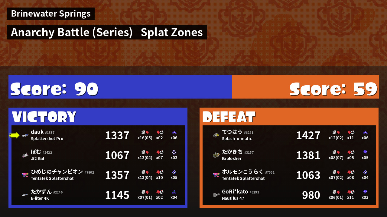| Mode | Splat Zones - Anarchy Battle (Series) | ||