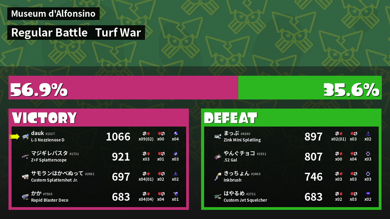 | Medals | #1 Overall Splatter #1 Turf Inker #1 Popular Target | ||