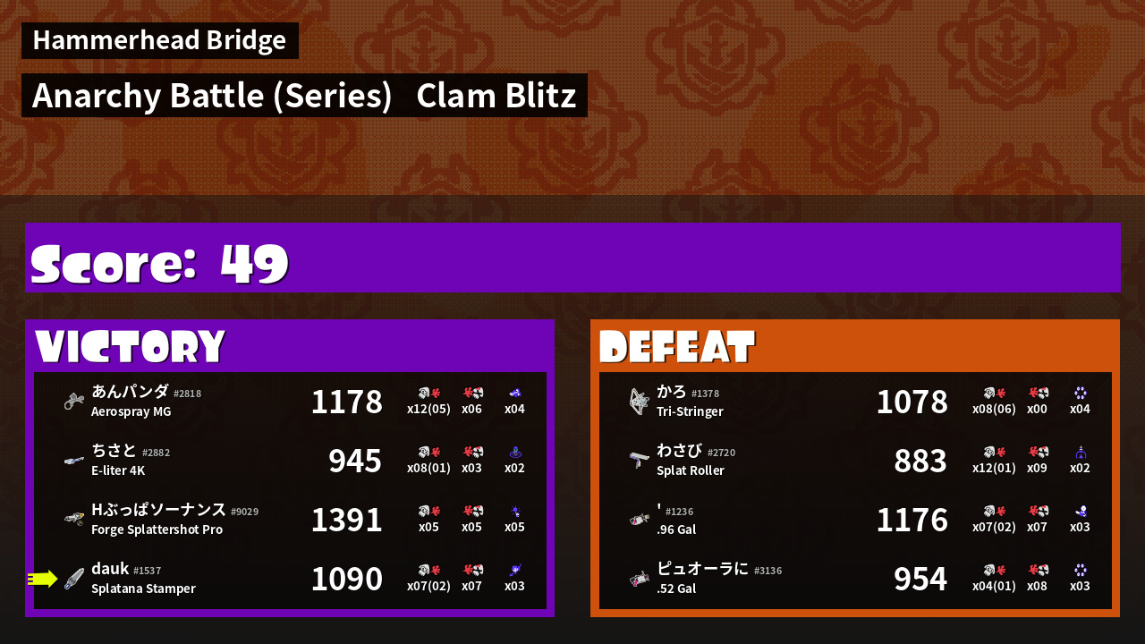 | Mode | Clam Blitz - Anarchy Battle (Series) | ||