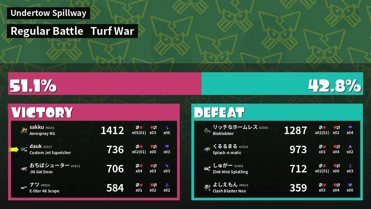 | Medals | #1 Popular Target #1 Super Jump Spot #1 Splat Assister | ||