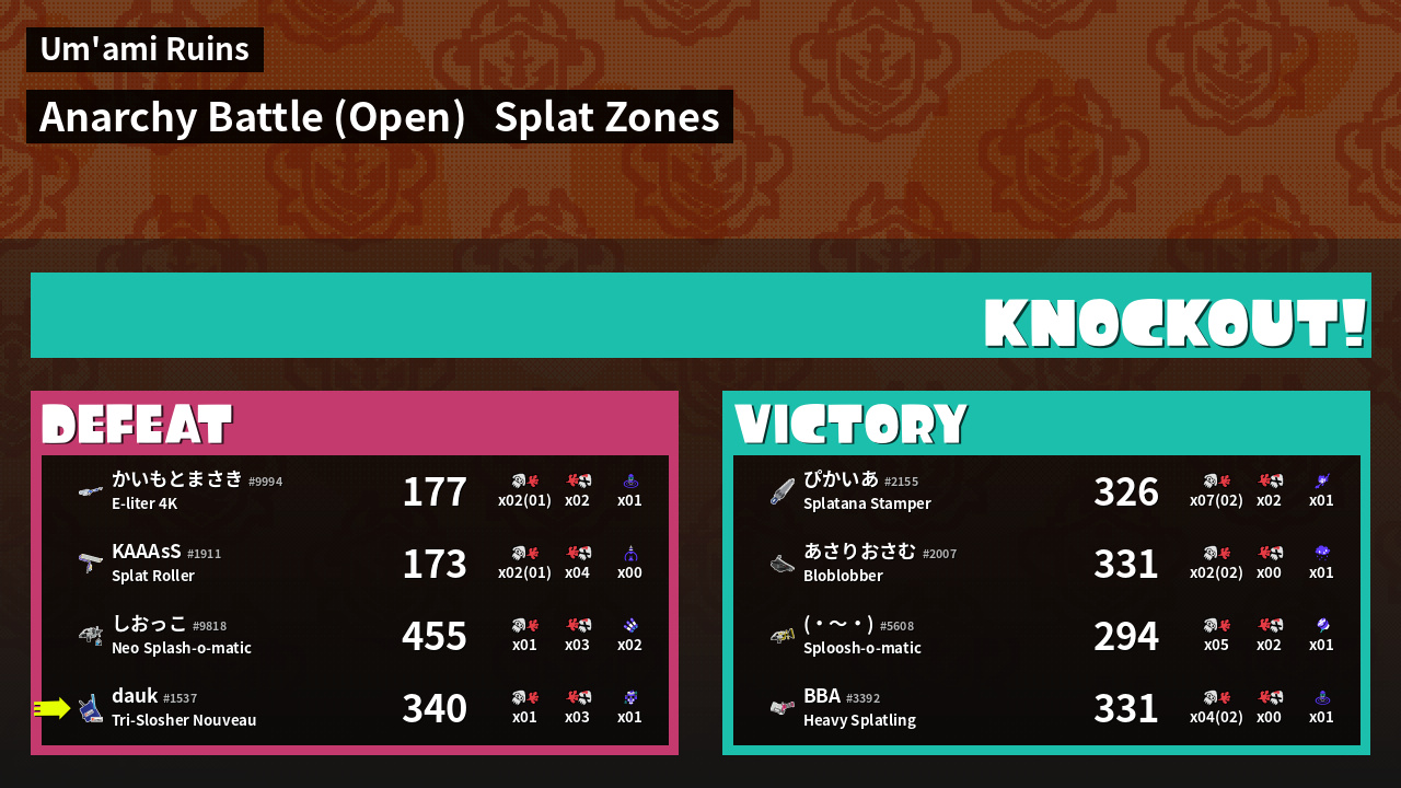 | Mode | Splat Zones - Anarchy Battle (Open) | ||