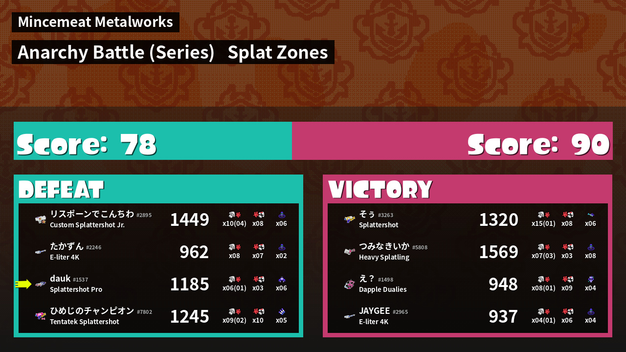 | Mode | Splat Zones - Anarchy Battle (Series) | ||