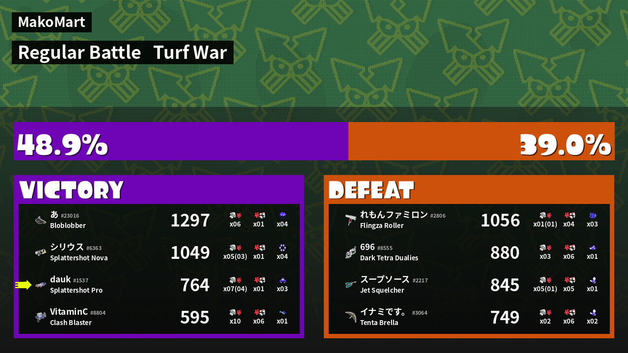 | Medals | #1 Super Jump Spot #1 Splat Assister #1 Crab Tank User | ||
