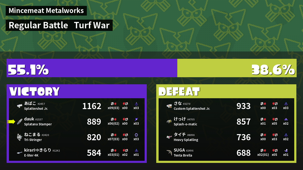 | Medals | #1 Enemy-Base Inker #1 Ground Traveler #1 Zipcaster User | ||