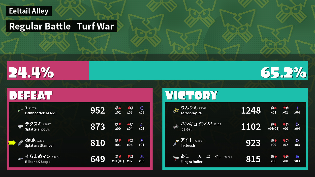 | Medals | #1 Ground Traveler #2 Overall Splatter #2 Enemy Splatter | ||