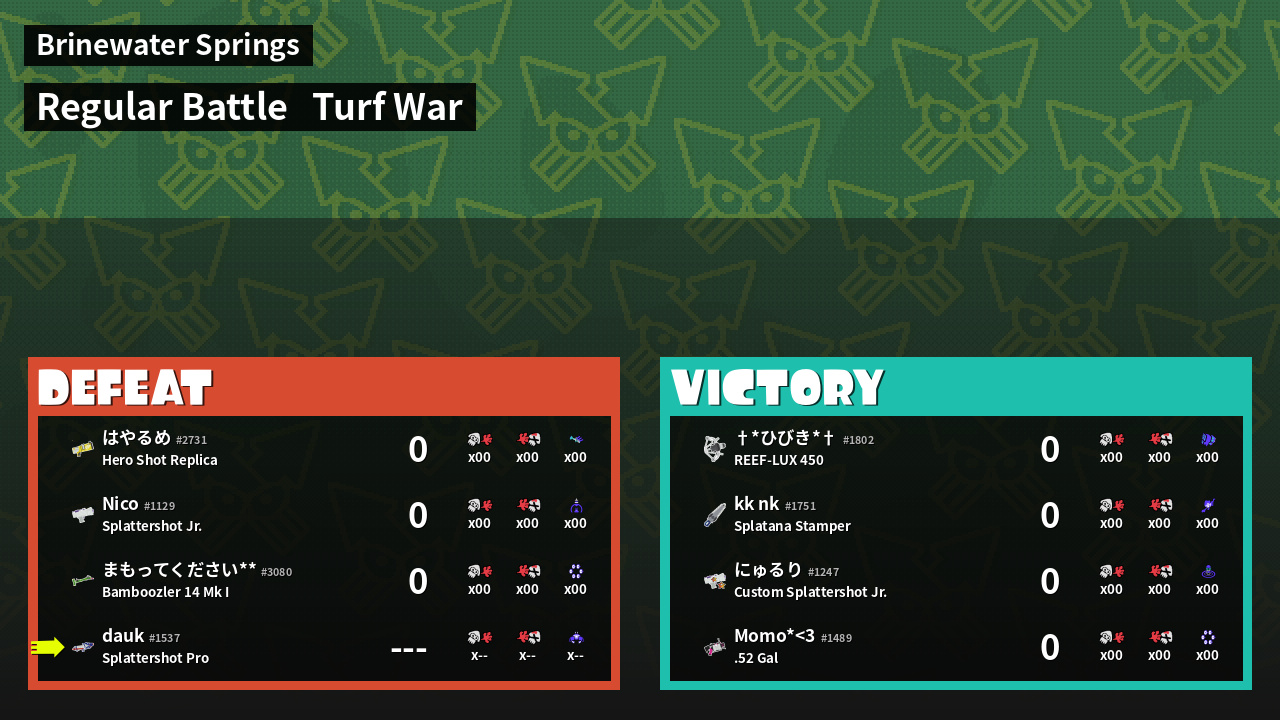 | Weapon | Splattershot Pro ( Angle Shooter / Crab Tank) | ||