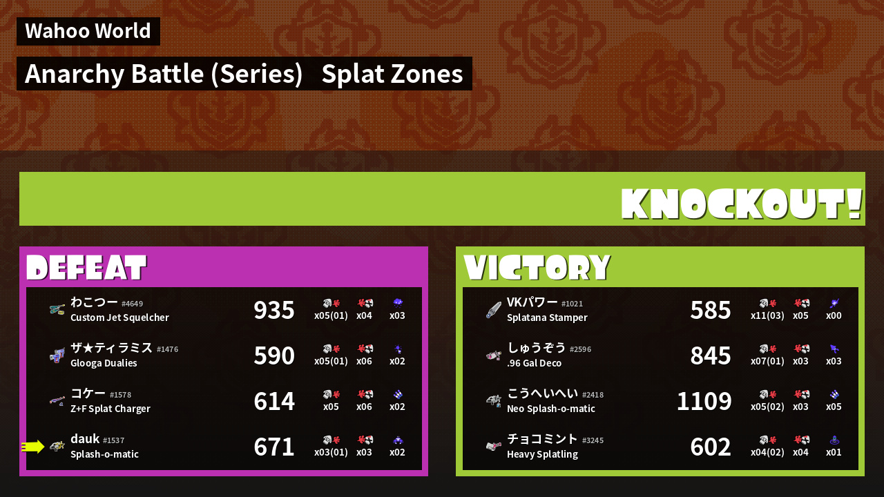 | Mode | Splat Zones - Anarchy Battle (Series) | ||