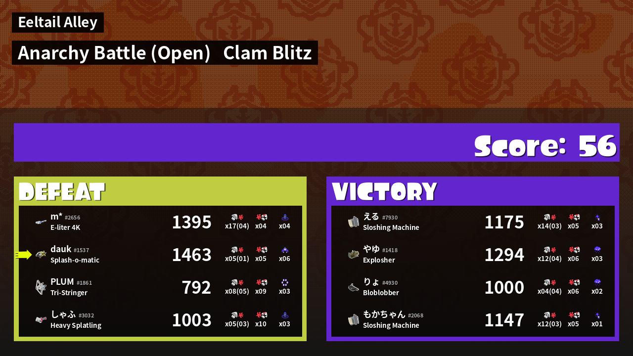 | Mode | Clam Blitz - Anarchy Battle (Open) | ||