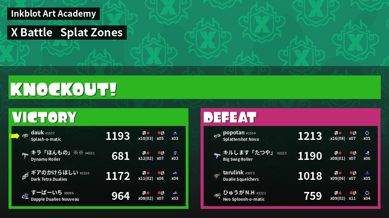 | Mode | Splat Zones - X Battle | ||