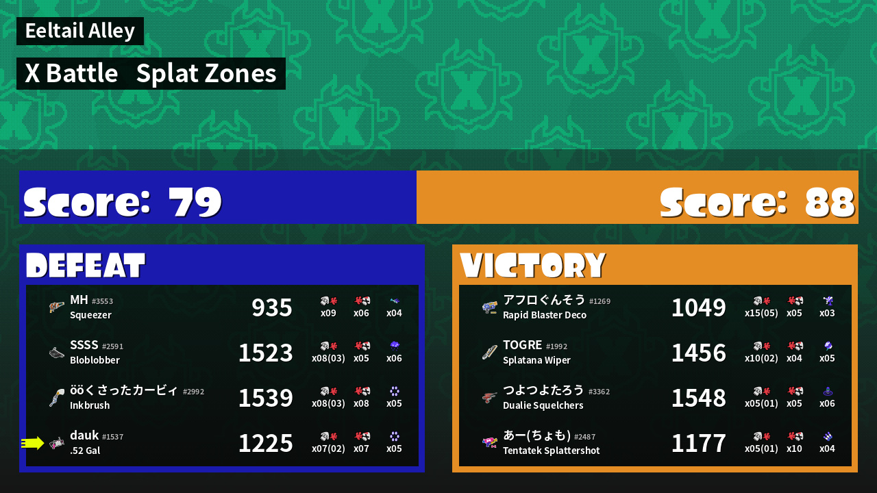 | Mode | Splat Zones - X Battle | ||