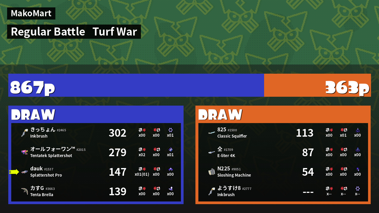 Name | Weapon | Inked | ![]() |
