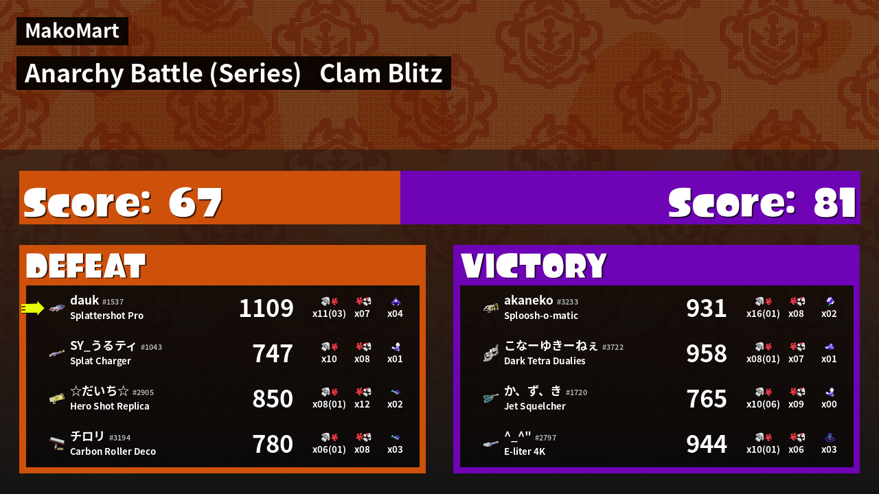 | Mode | Clam Blitz - Anarchy Battle (Series) | ||