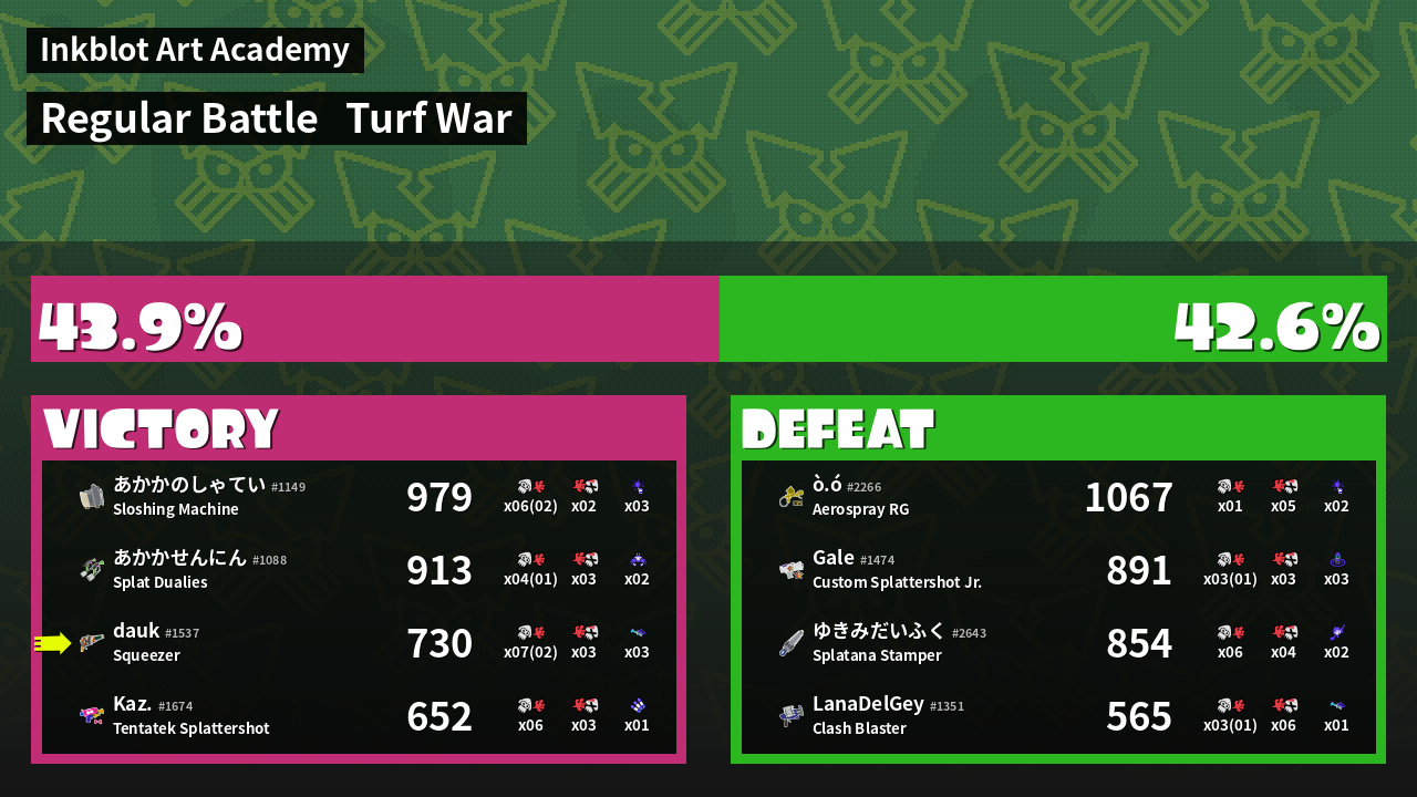 | Medals | #1 Overall Splatter #1 Splat Assister #1 Base Defender | ||