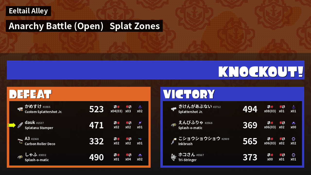 | Mode | Splat Zones - Anarchy Battle (Open) | ||