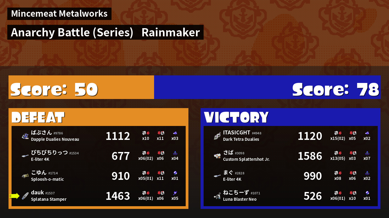 | Mode | Rainmaker - Anarchy Battle (Series) | ||
