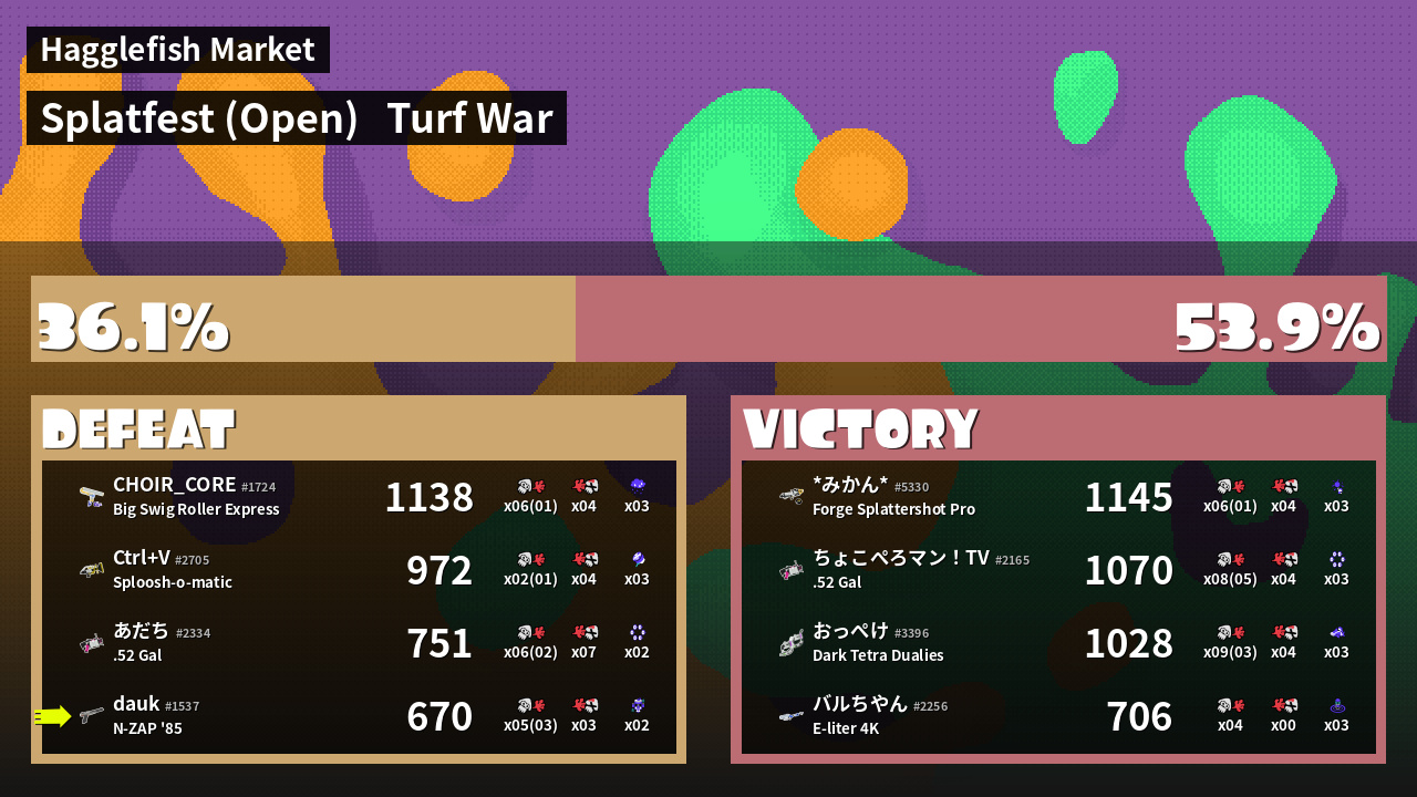 | Medals | #1 Super Jump Spot #1 Splat Assister #1 Tacticooler User | ||