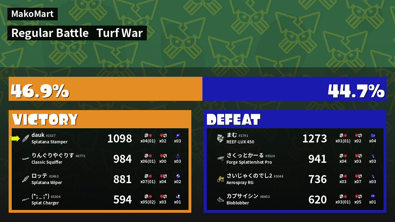 | Mode | Turf War - Regular Battle | ||