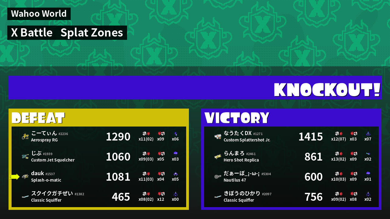 | Mode | Splat Zones - X Battle | ||