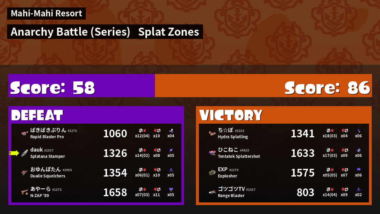 Kills / Deaths | 12 + 2 / 8 > Kill Ratio: 1.50 | ||