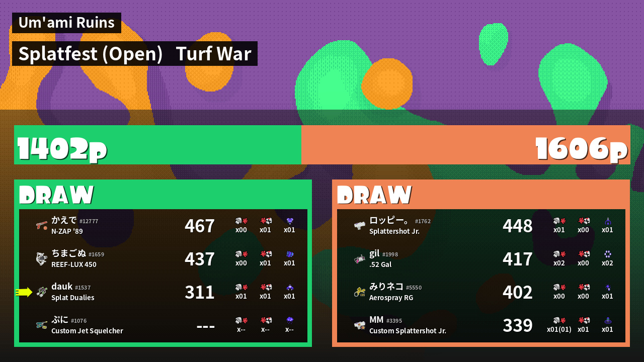 | Mode | Turf War - Splatfest (Open) | ||