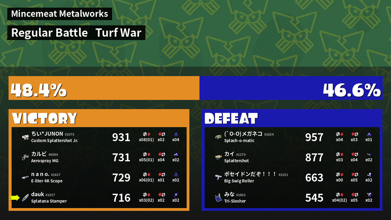 | Medals | #1 Splat Assister #1 Ink Consumer #2 Enemy-Base Inker | ||