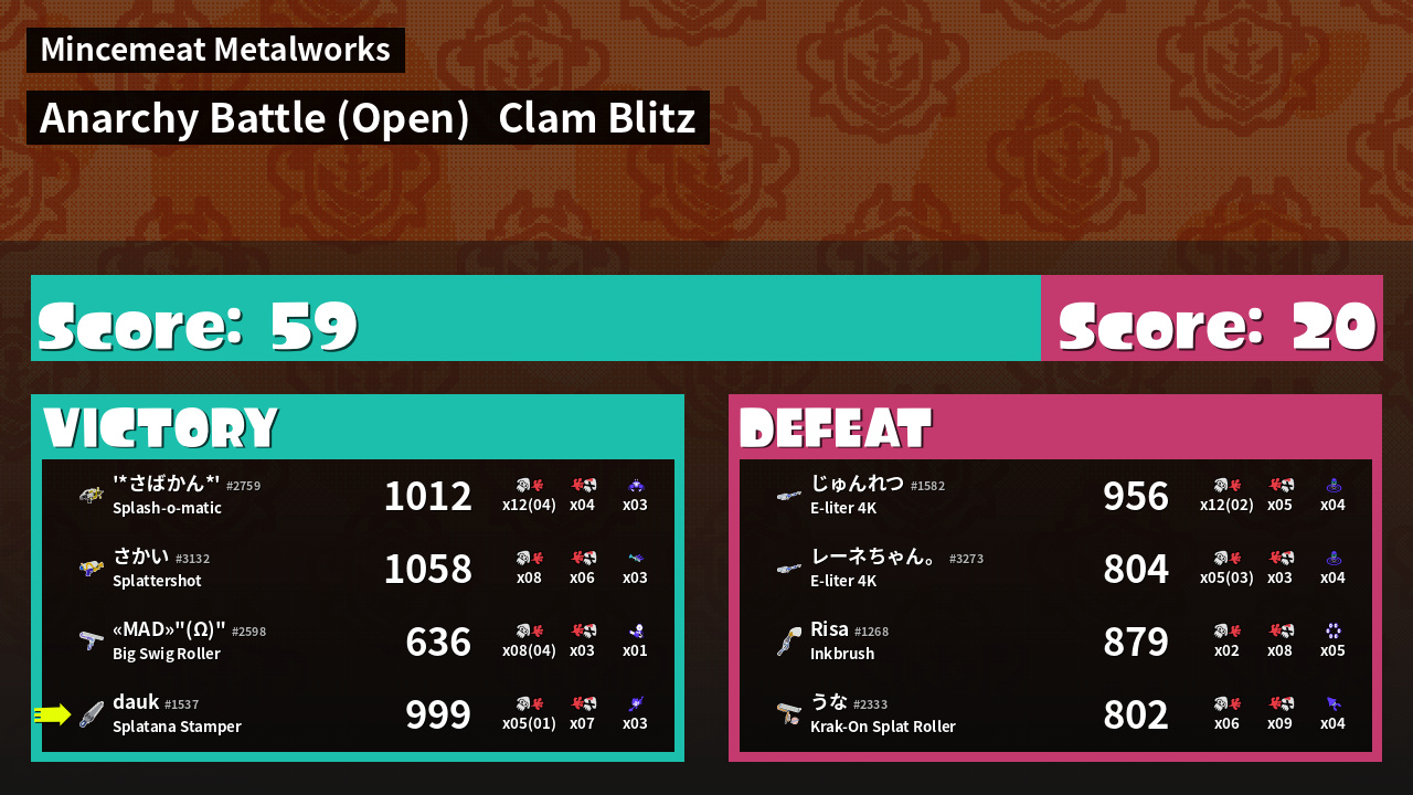 | Mode | Clam Blitz - Anarchy Battle (Open) | ||