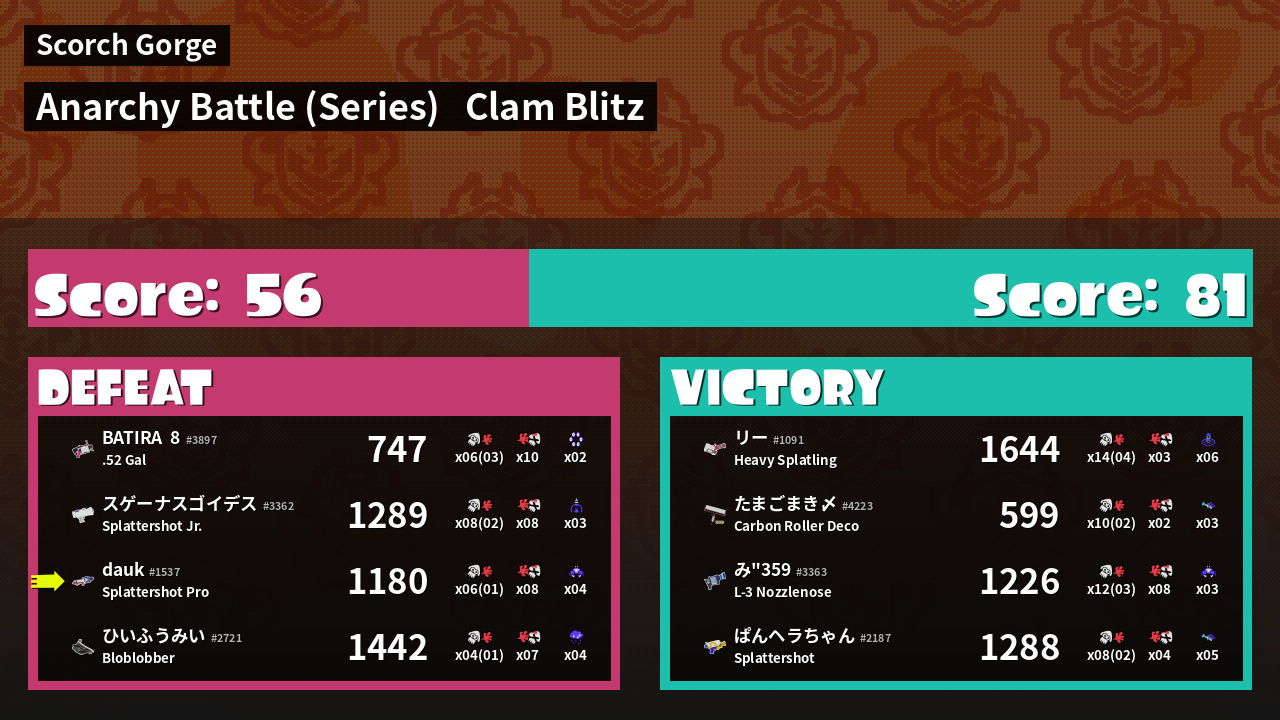 | Mode | Clam Blitz - Anarchy Battle (Series) | ||