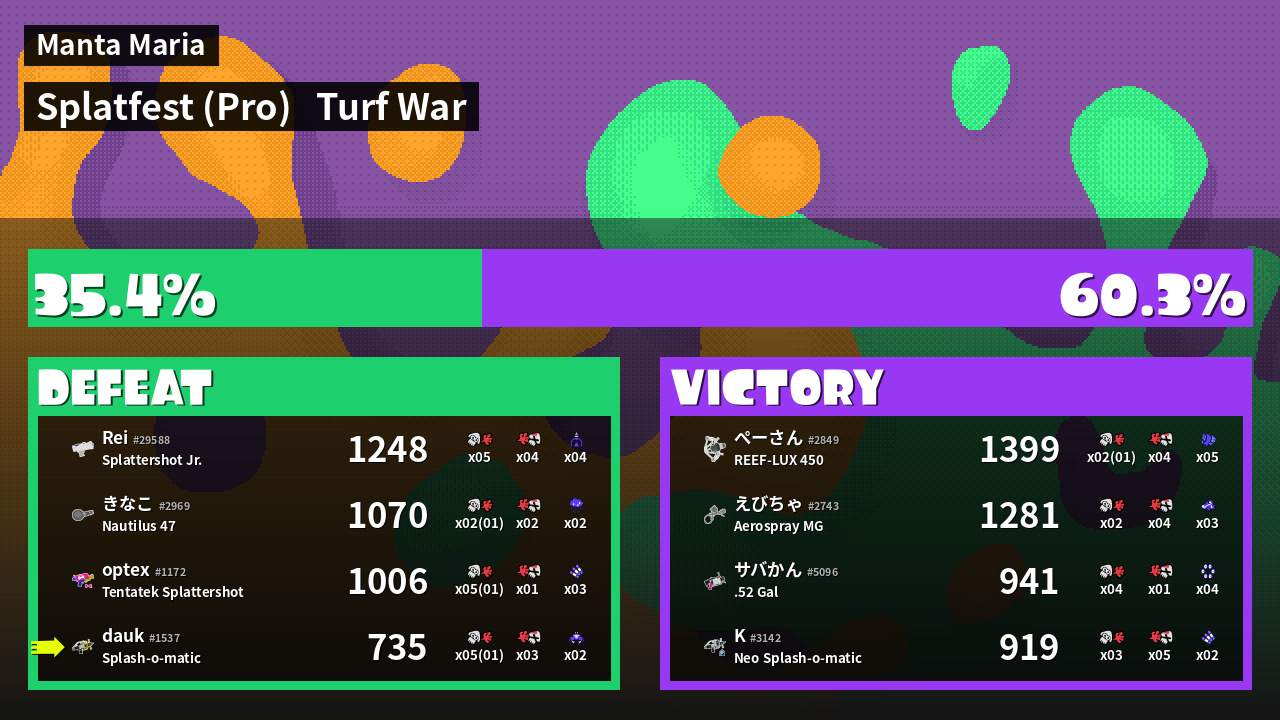 | Medals | #1 Overall Splatter #1 Super Jump Spot #1 Splat Assister | ||
