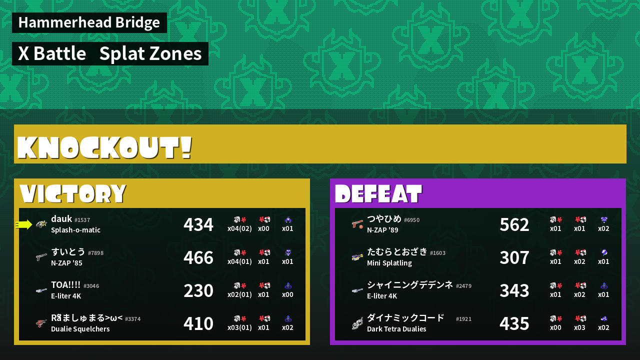 | Mode | Splat Zones - X Battle | ||