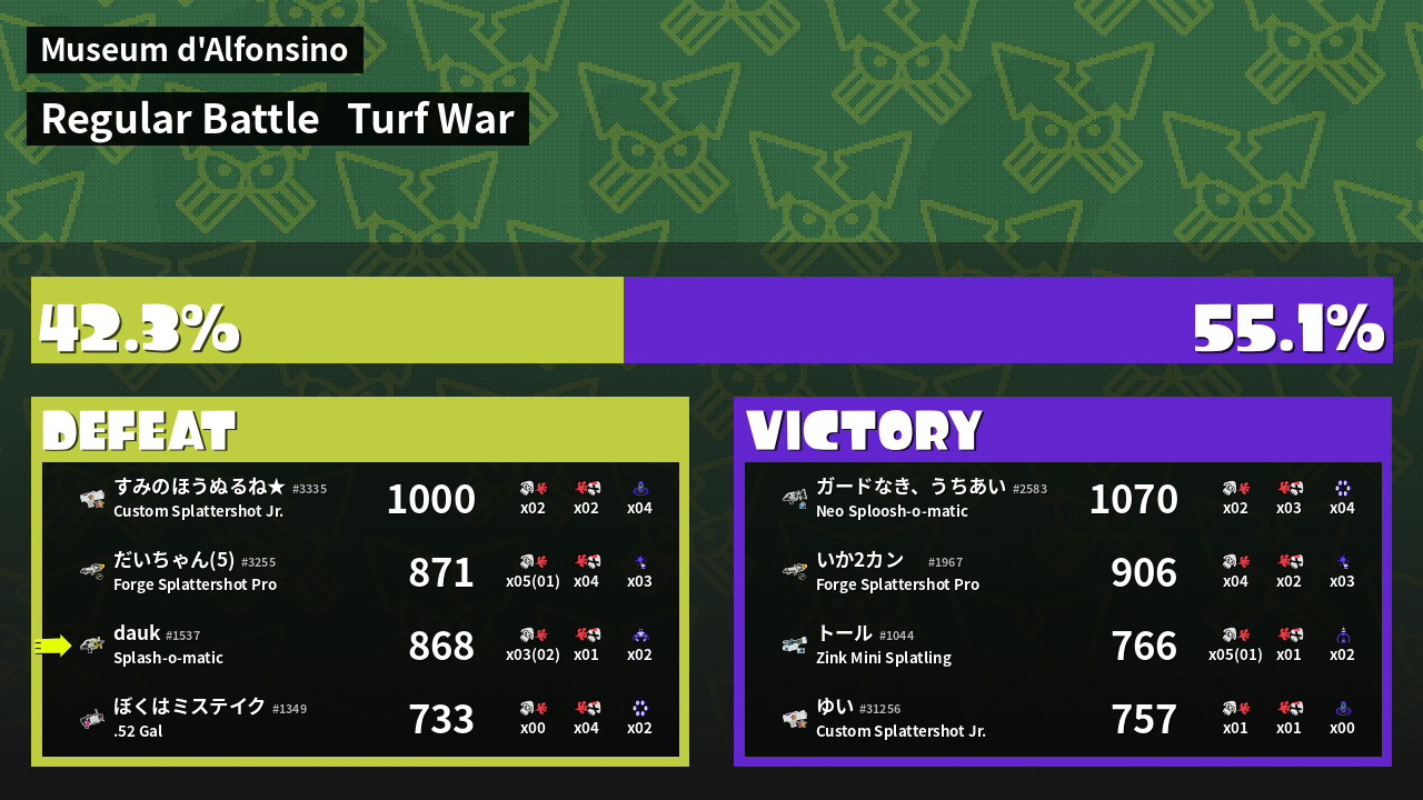 | Medals | #1 Home-Base Inker #1 Super Jump Spot #1 Splat Assister | ||