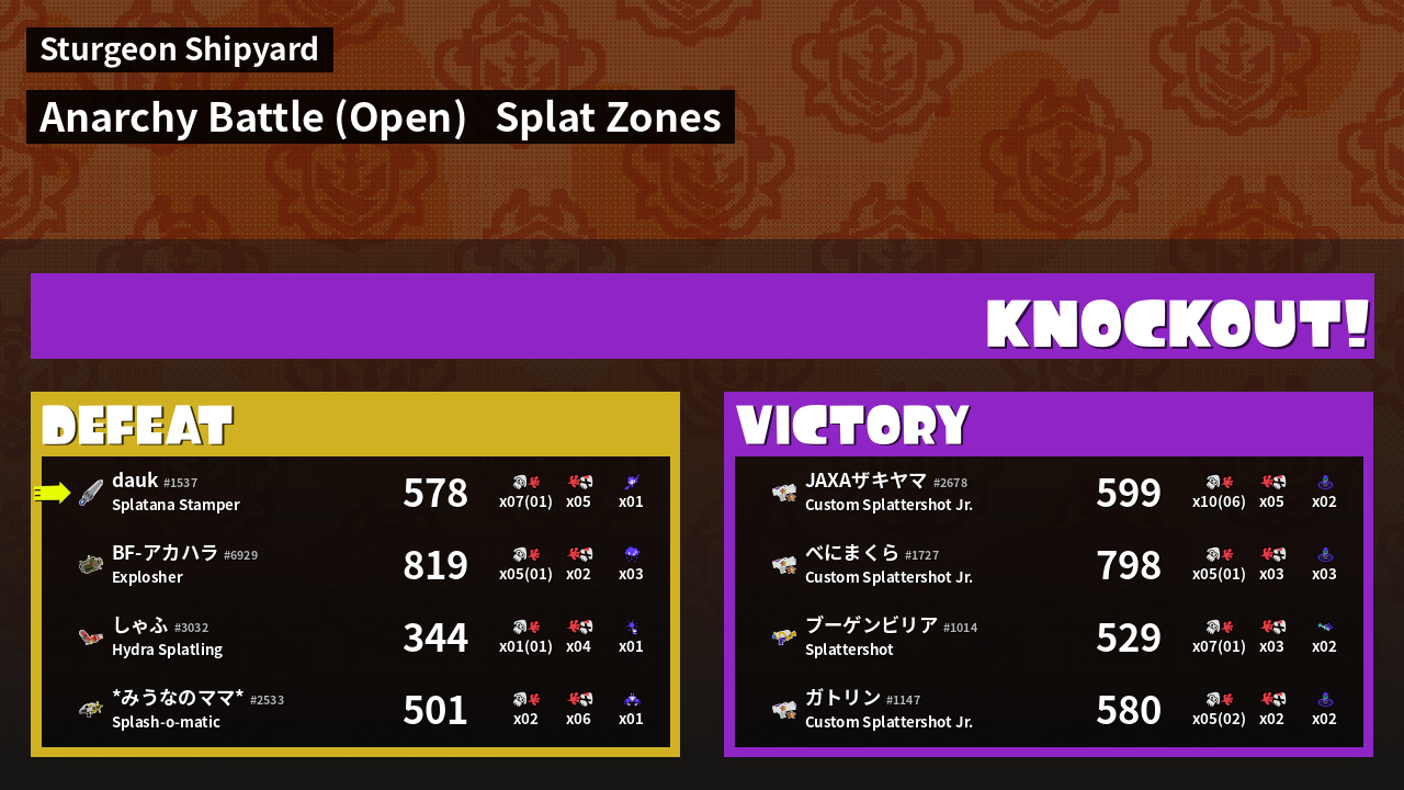 | Mode | Splat Zones - Anarchy Battle (Open) | ||