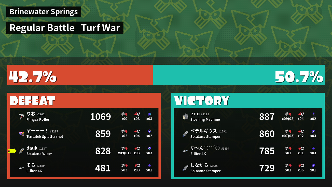 | Mode | Turf War - Regular Battle | ||
