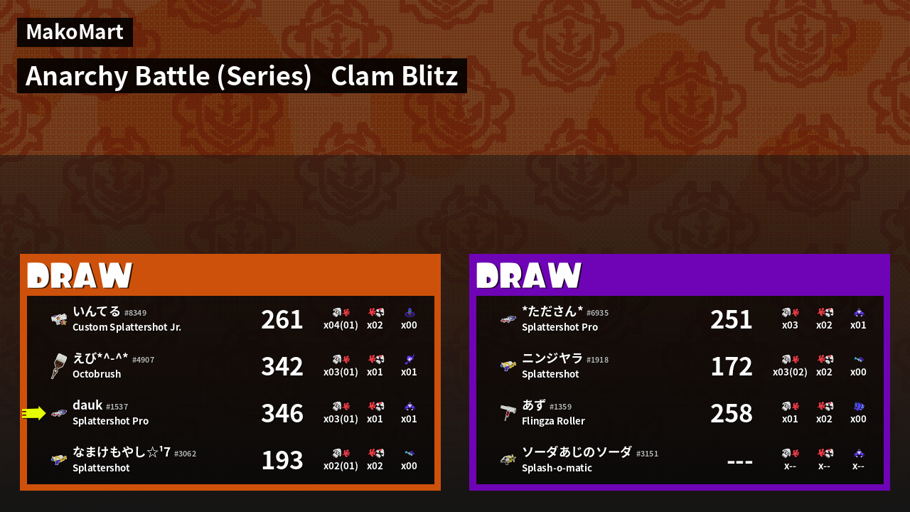 | Mode | Clam Blitz - Anarchy Battle (Series) | ||