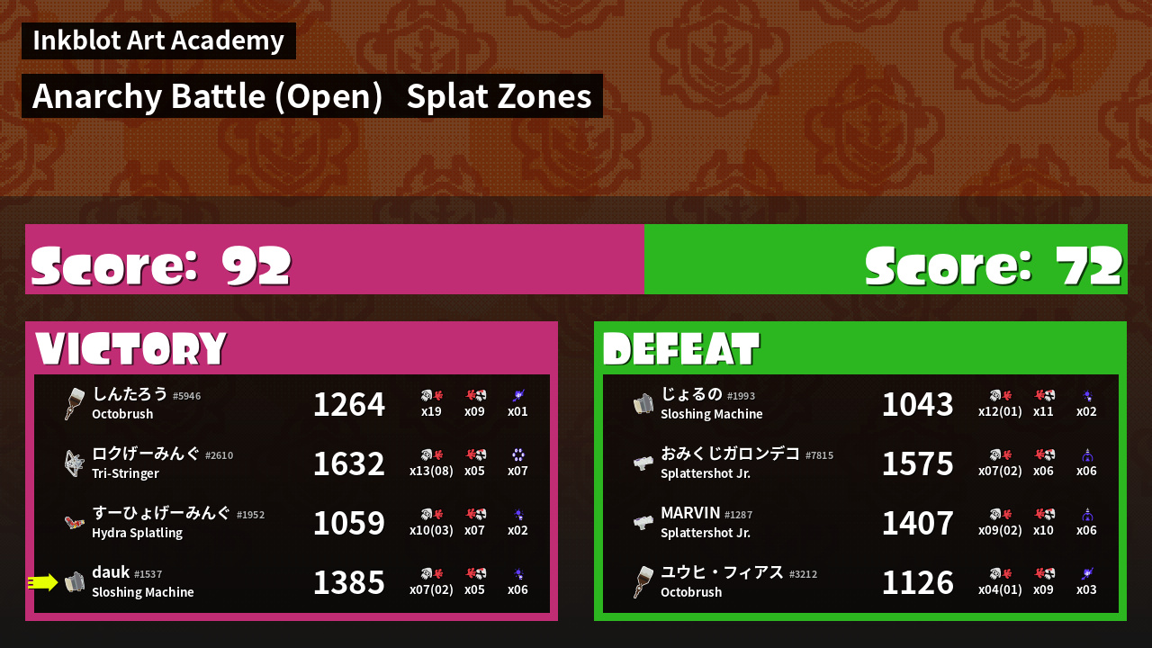 | Mode | Splat Zones - Anarchy Battle (Open) | ||