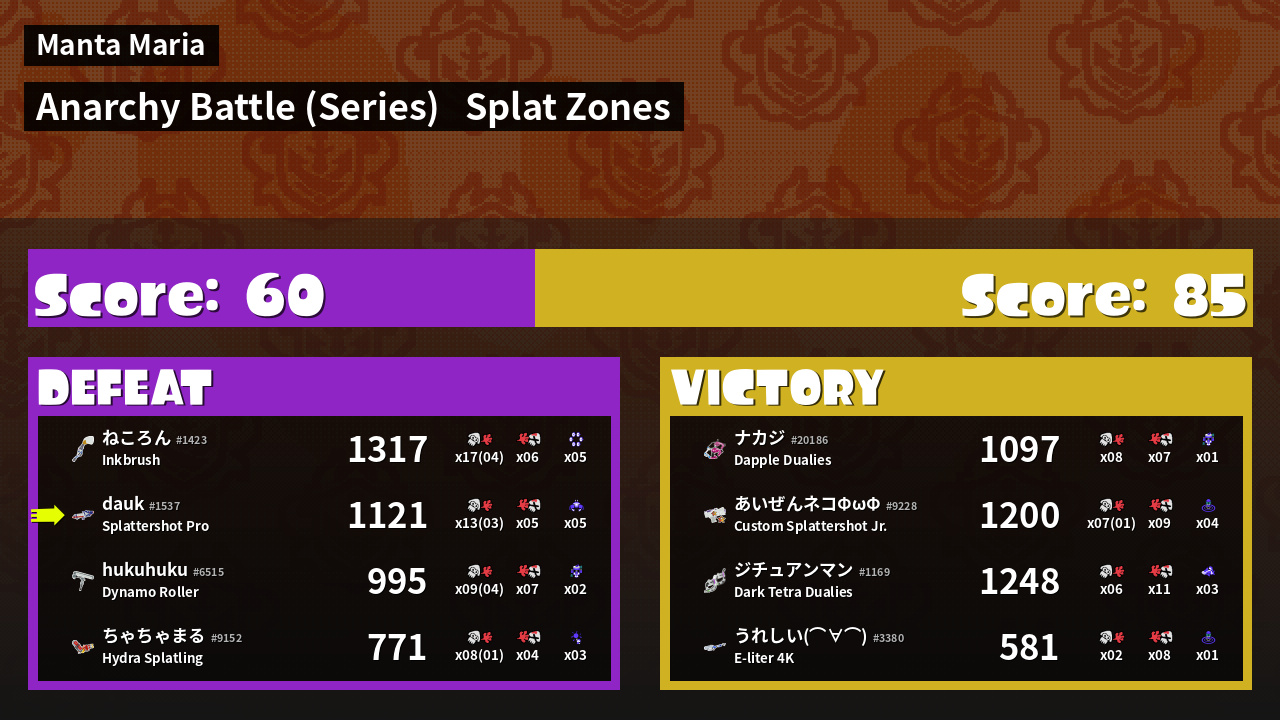 | Mode | Splat Zones - Anarchy Battle (Series) | ||