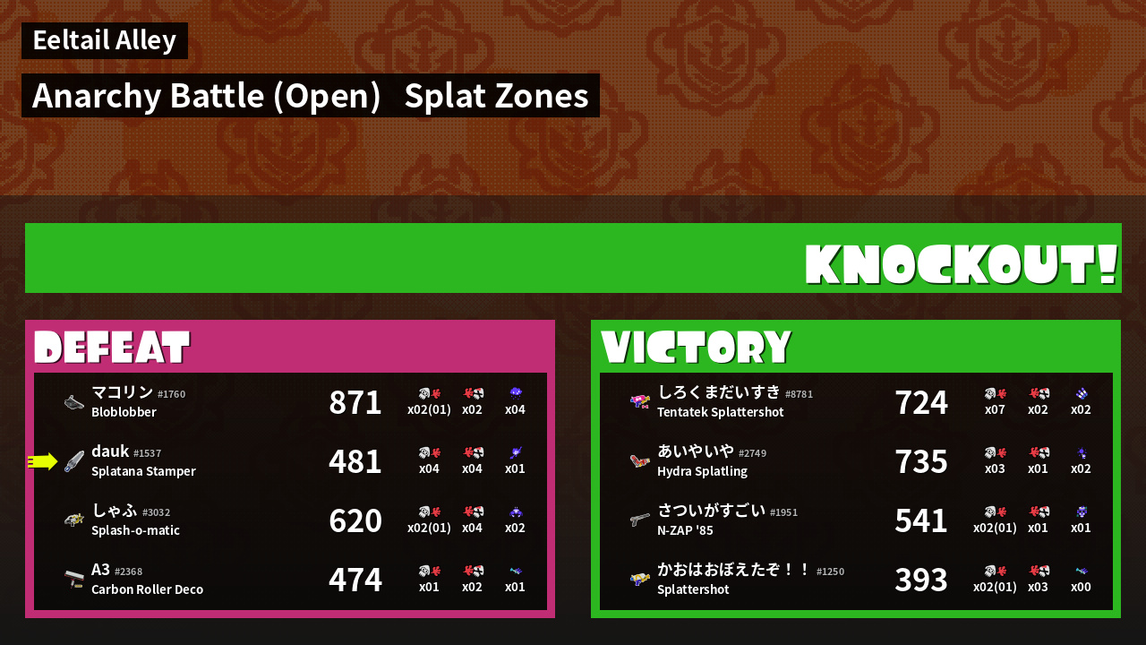 | Mode | Splat Zones - Anarchy Battle (Open) | ||