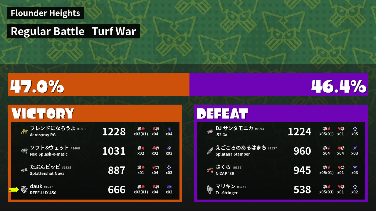 | Mode | Turf War - Regular Battle | ||