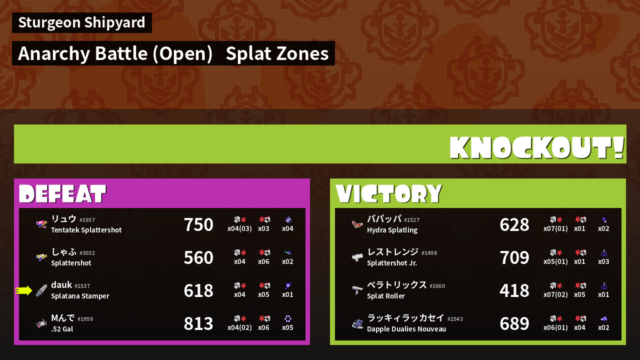 | Mode | Splat Zones - Anarchy Battle (Open) | ||
