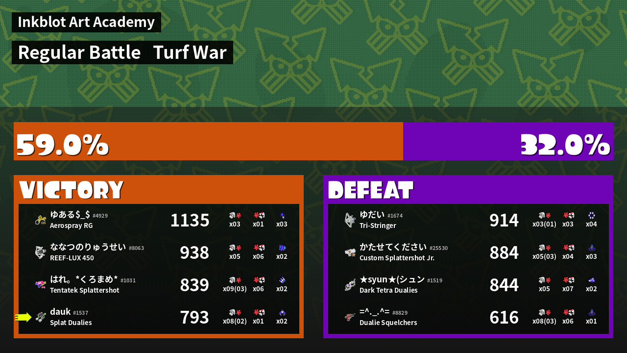 | Mode | Turf War - Regular Battle | ||