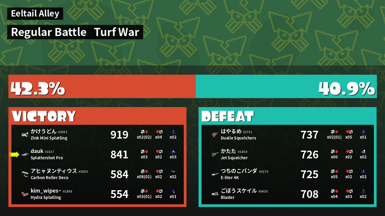 | Mode | Turf War - Regular Battle | ||