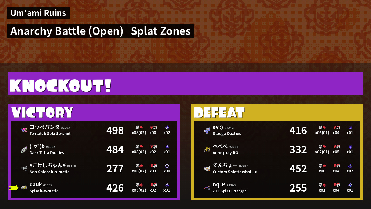 | Mode | Splat Zones - Anarchy Battle (Open) | ||