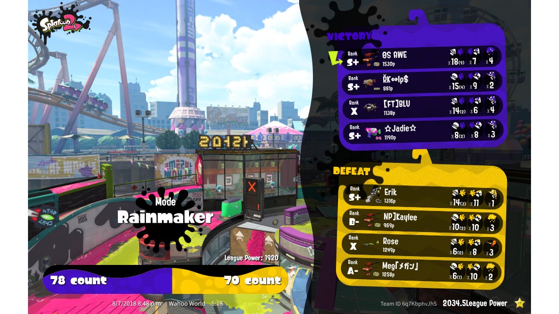 | Mode | Rainmaker - League Battle (Twin) | ||||||||||||||||||||||||||||