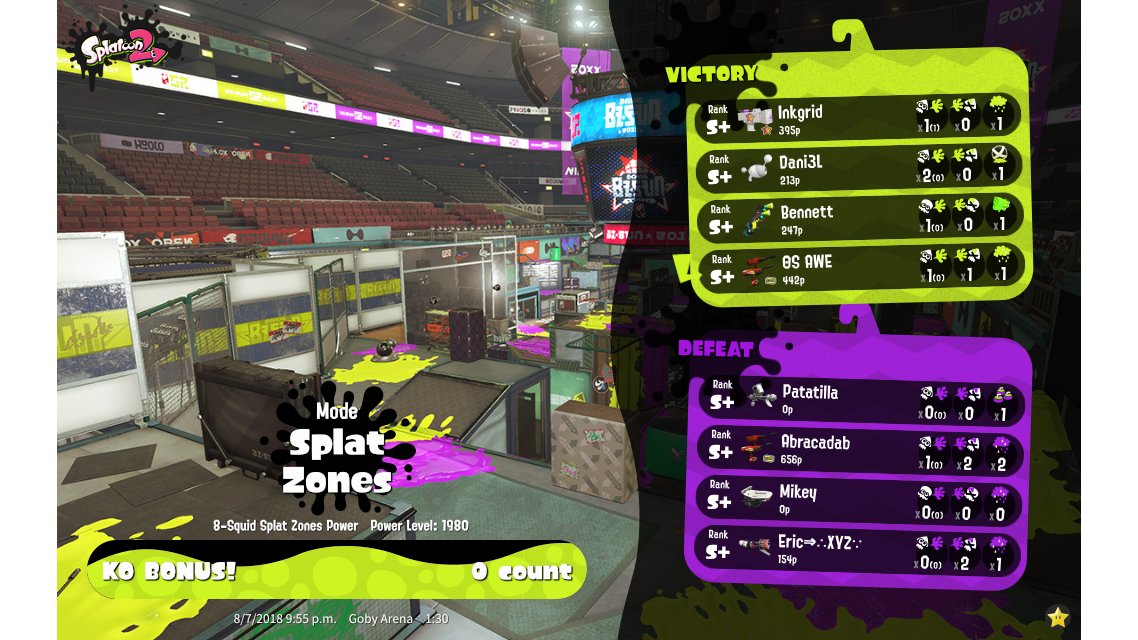 | Mode | Splat Zones - Ranked Battle | ||||||||||||||||||||||||||||
