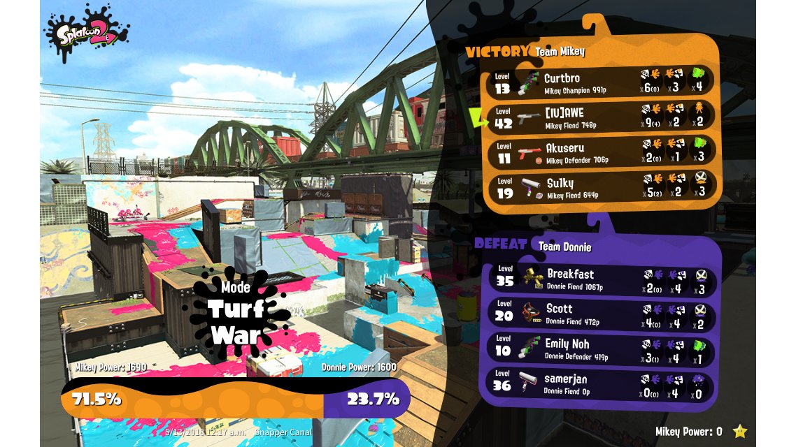 | Mode | Turf War - Splatfest (Solo) | |||||||||||||||||||||||||||||||||||||