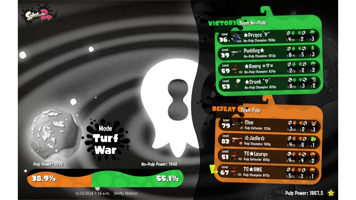 | Splatfest Power | 1,867.5 | ||||||||||||||||||||||||||||